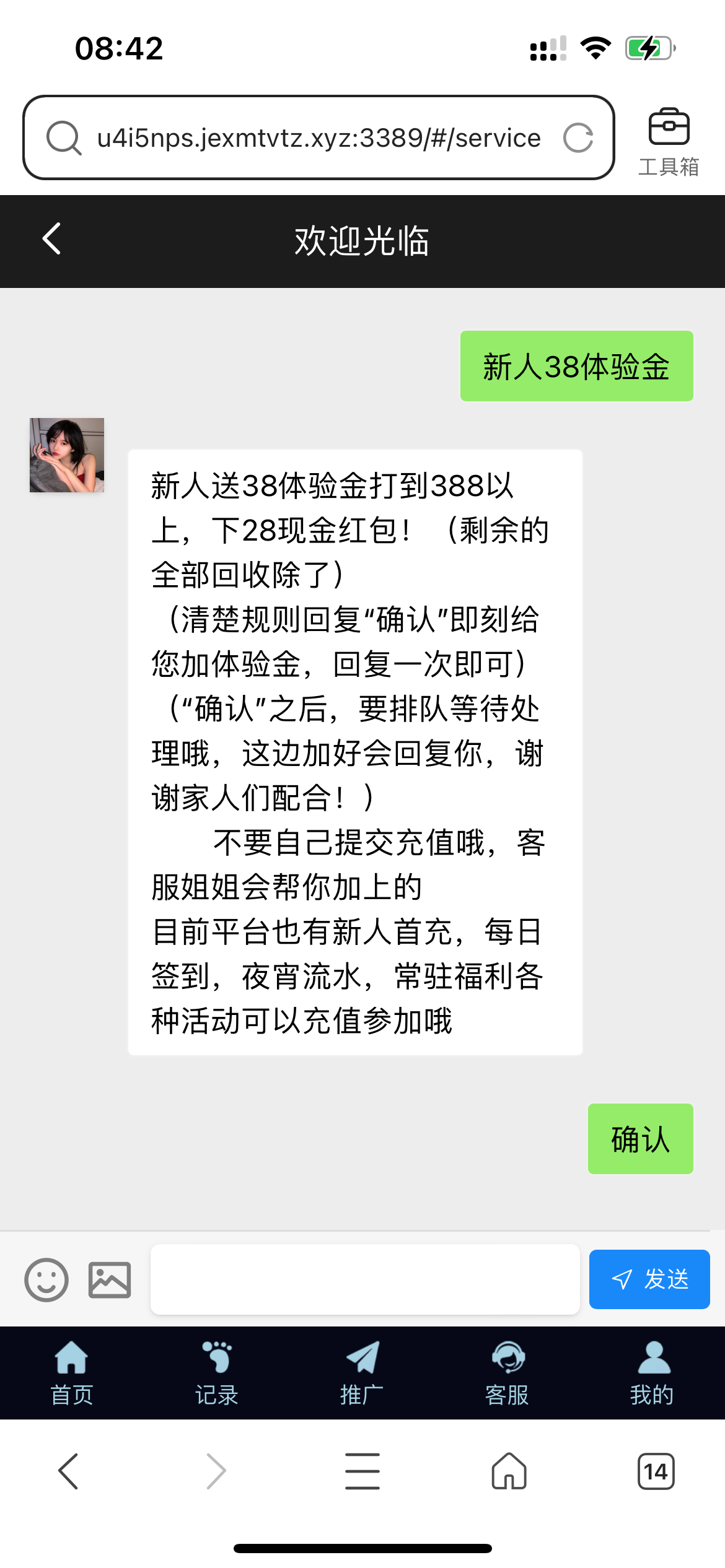 (清楚规则回复“确认”即刻给您加体验金,回复一次即可)