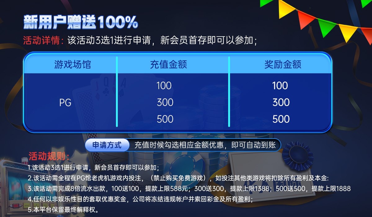 活动规则:需完成10倍流水,只能在PG电子馆游戏,禁止购买免费游戏,提款上限1888-5888