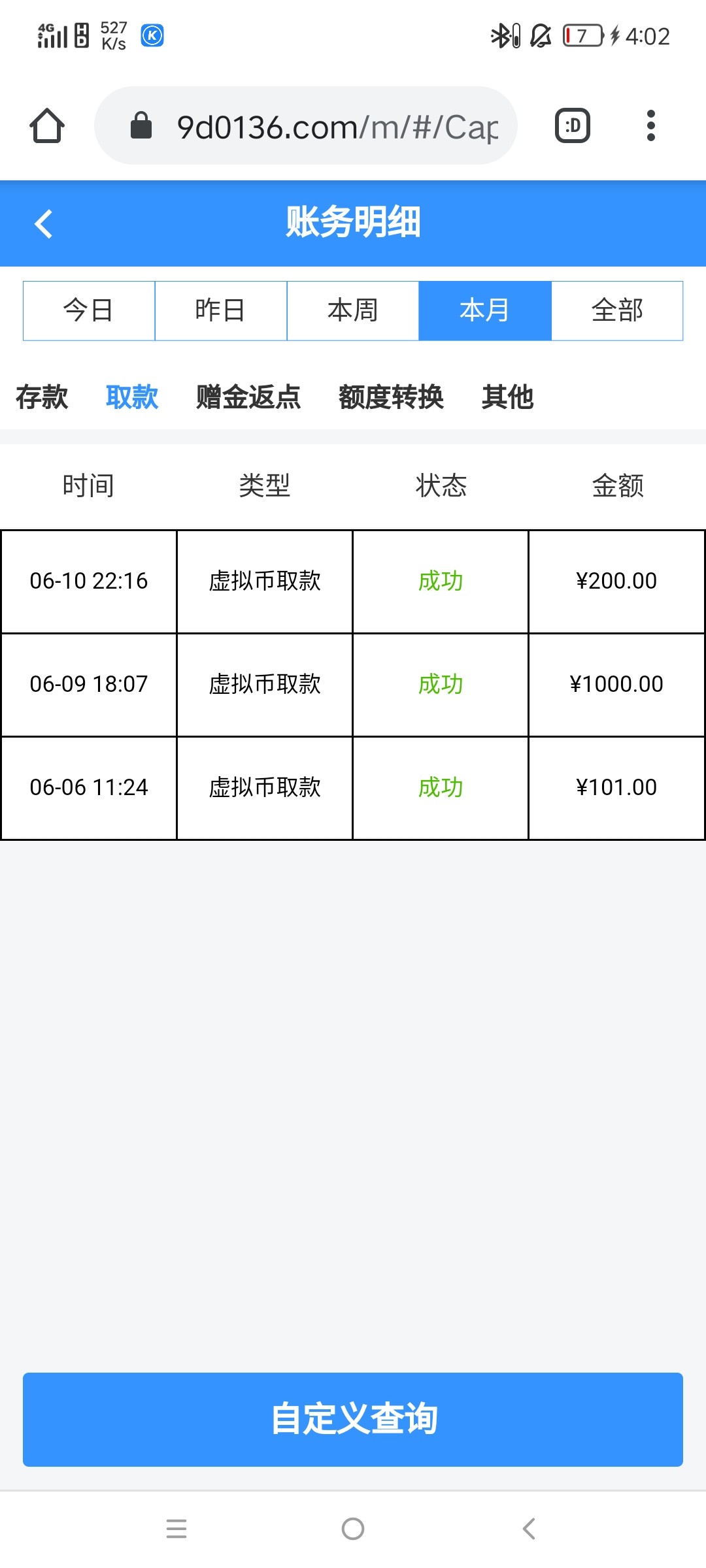 出款情况:自测