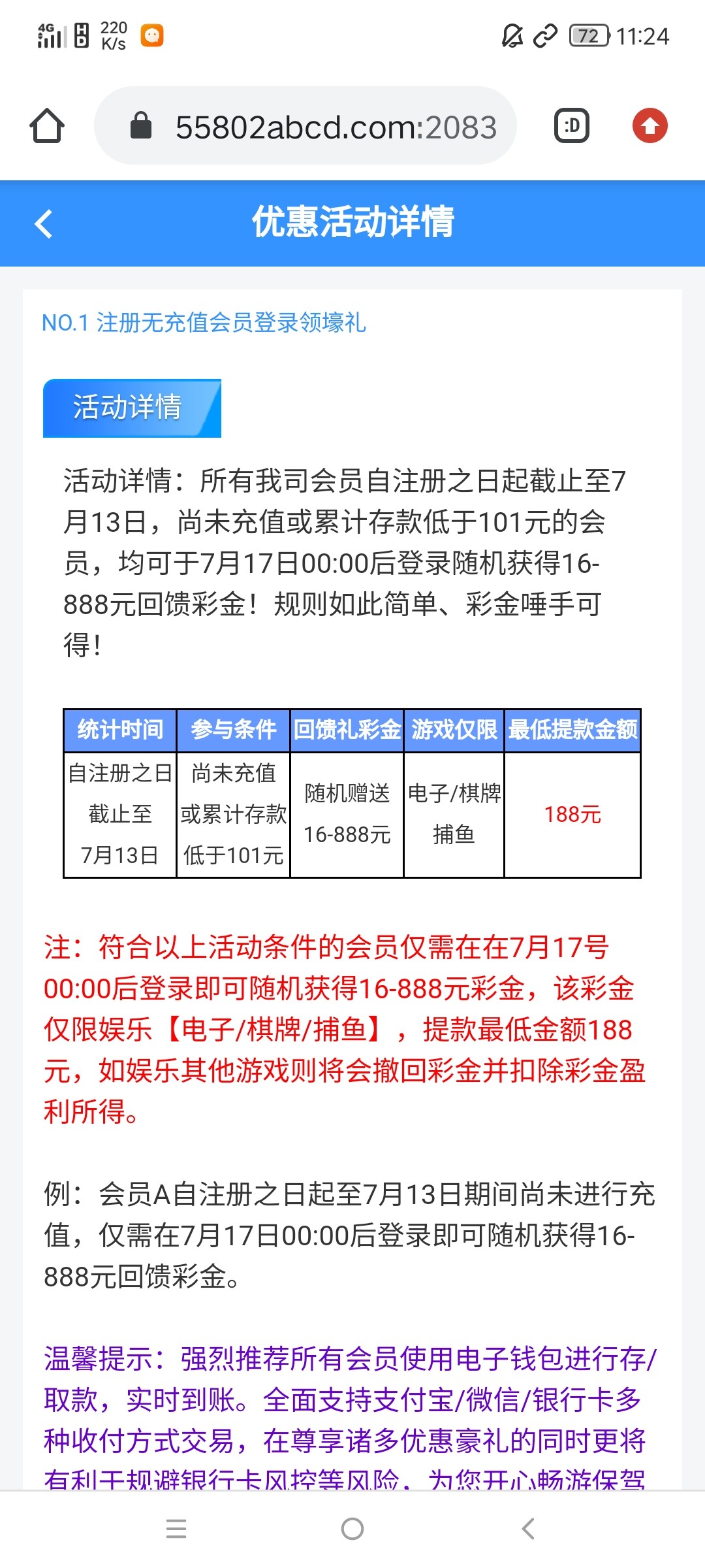 注册过的无视等待17号登录领回馈彩金即可,没注册过的现在注册17号领最低16元满188提现,出款自测!