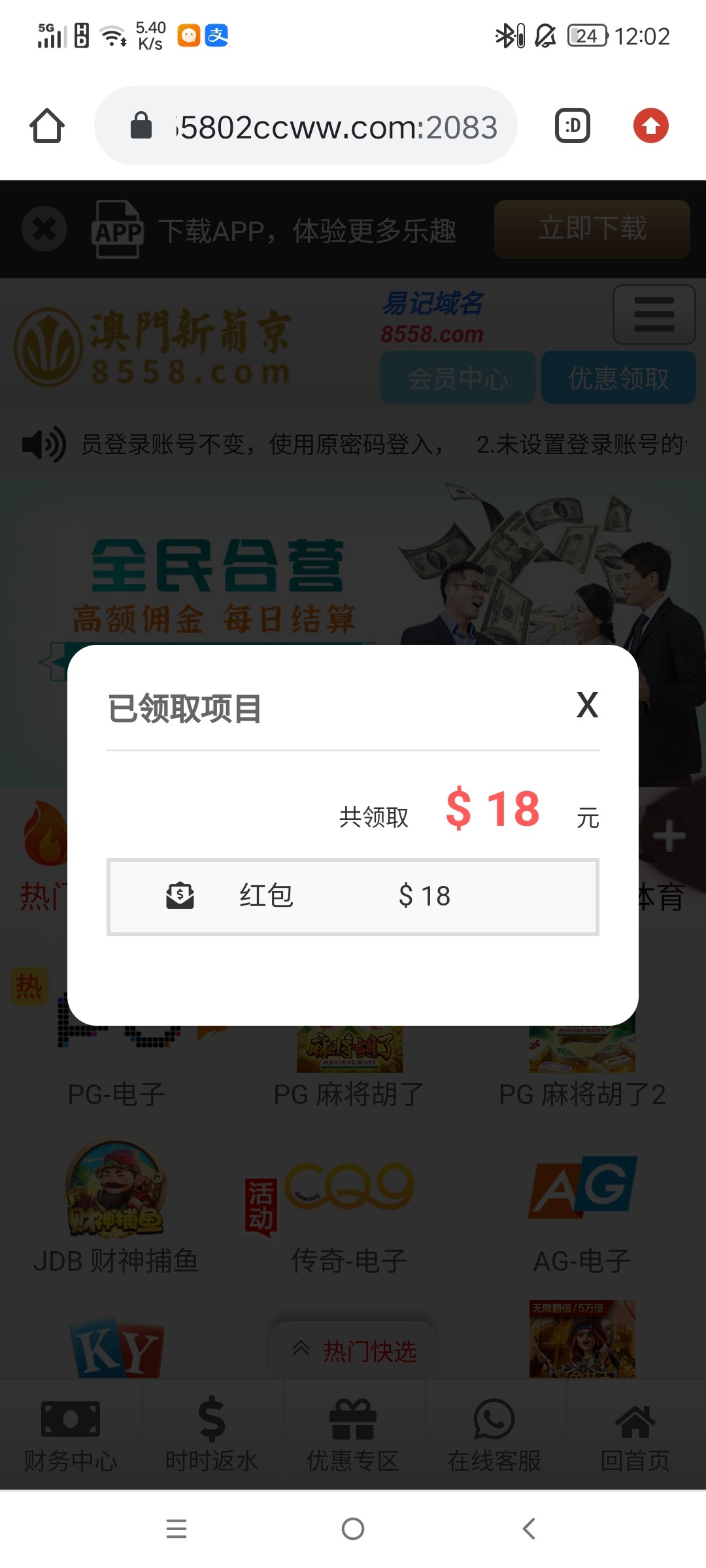 新/老用户登录账号,系统自动弹出红包,注册过的送16,充值过的送56,出款自测!