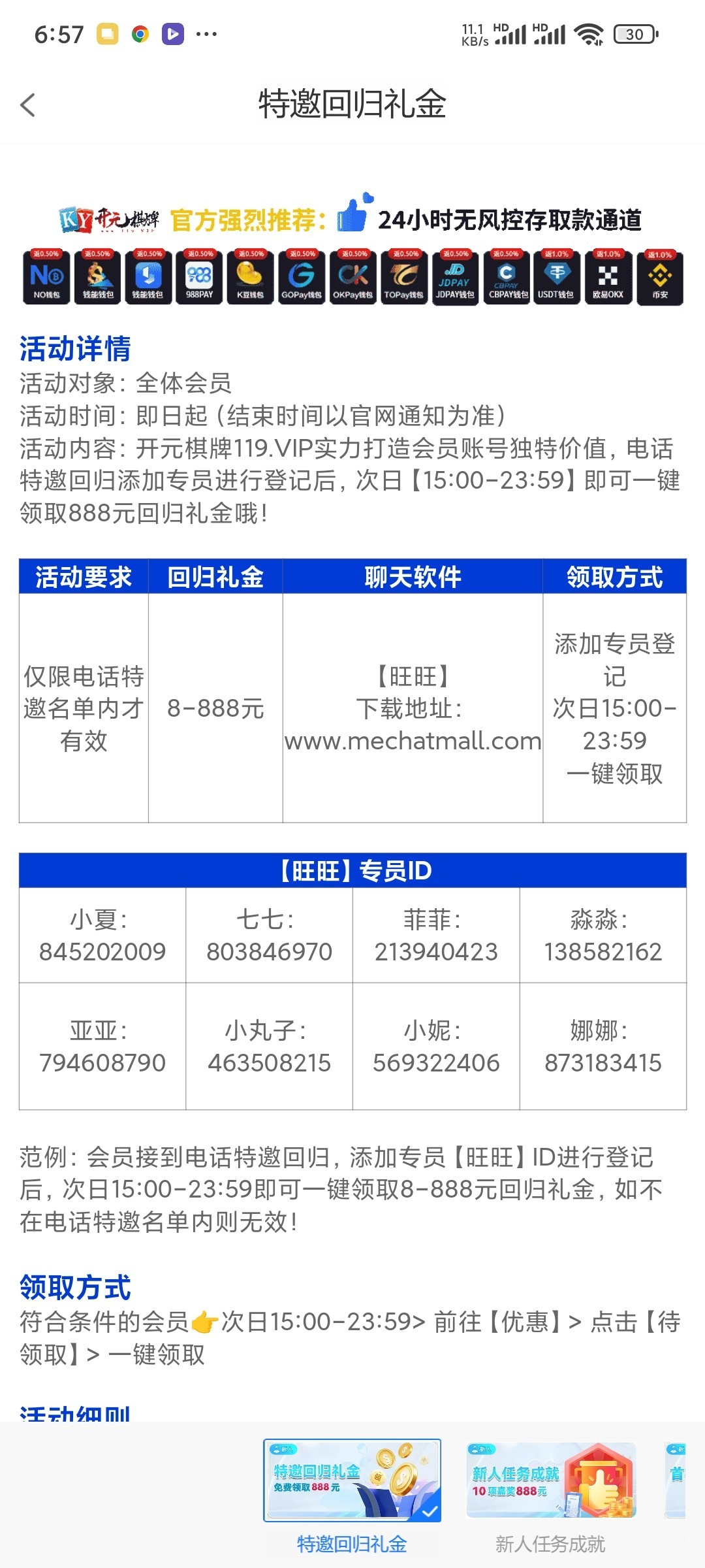 下载注册登录后 绑卡添加旺旺专员登记 次日派送