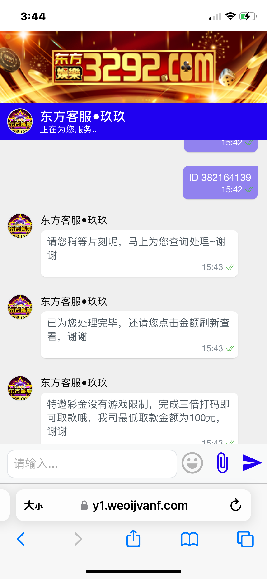 新用户无视,我去年注册的账号 刚刚登录找客服碰电话彩金 直接就给了 没有来电话 3292.com
