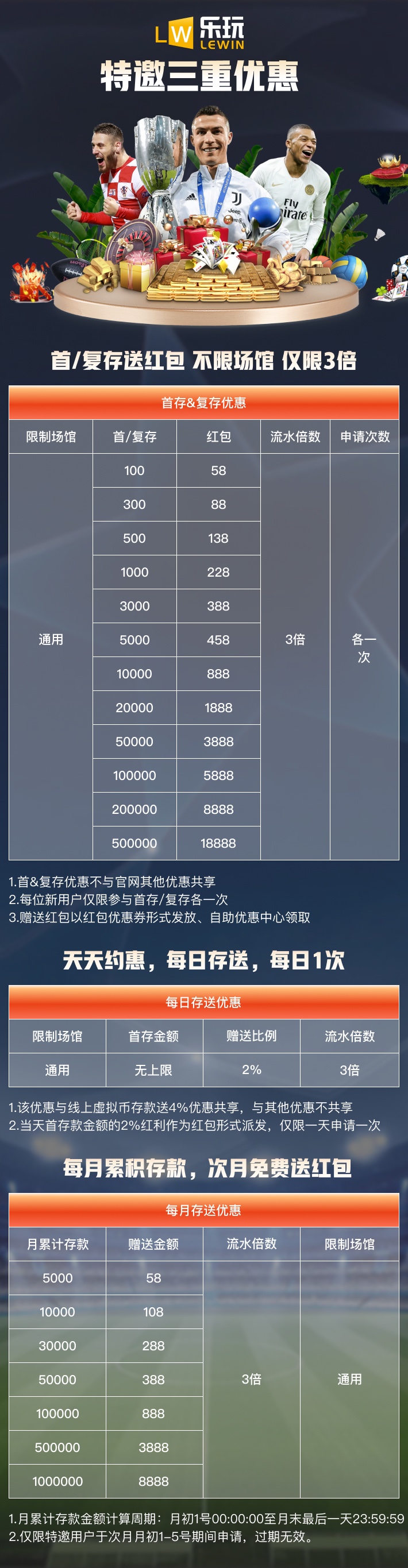 ✨首存活动:首存100送58|300送88|500送138|1000送288|3000送388,本活动本1水彩金3水,具体看下图。