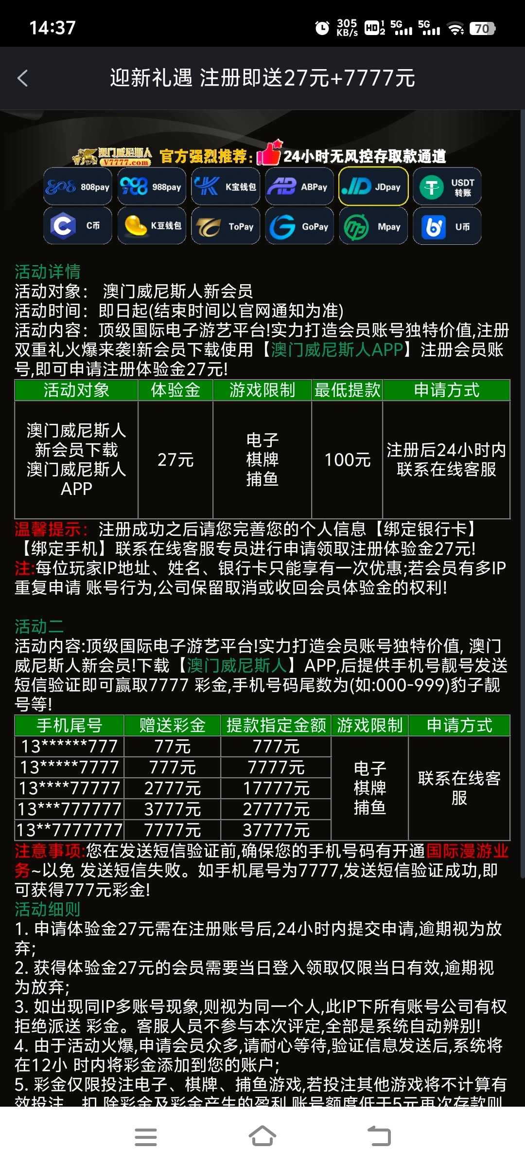 新用户注册绑卡,完善信息。联系在线客服申请27彩金。具体自测!