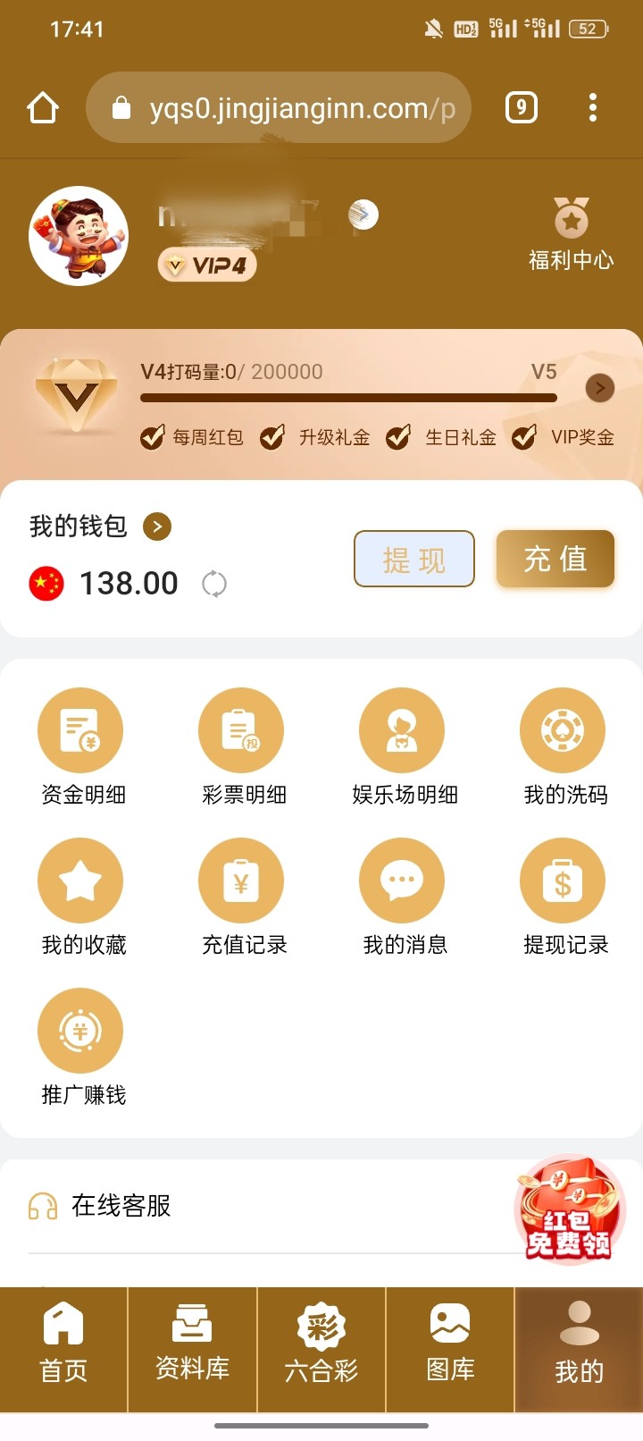 一注册他就直接是vip4了,然后再点击福利中心那里。领取vip晋级彩金